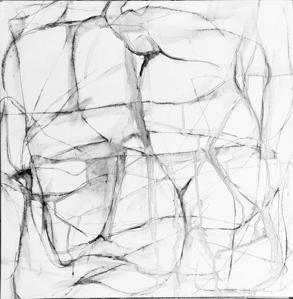 Hiili ja akvarellikynä 70x70 cm, kapeat, valkoiset kehykset, hinta 750 € myös osamaksulla 4 osassa. Alv ja toimitusmaksu sisältyvät hintaan.